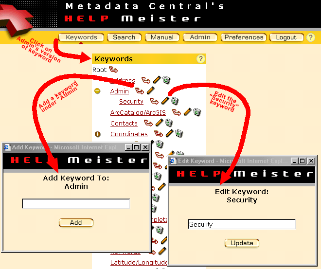 example below, the sub-keyword icon to the right of "Admin" has displayed a